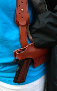 When you are able to deploy a handgun beneath a covering garment, the shoulder holster should be considered. The shoulder holster has all of the advantages of the crossdraw when driving or seated and also a couple more. If you have had a lower back injury the shoulder holster gets the weight of the gun off of the belt line. The best shoulder holsters use a well-made leather harness. Two magazines on the opposite side of the handgun keep the handgun balanced. This is an excellent option well worth studying.